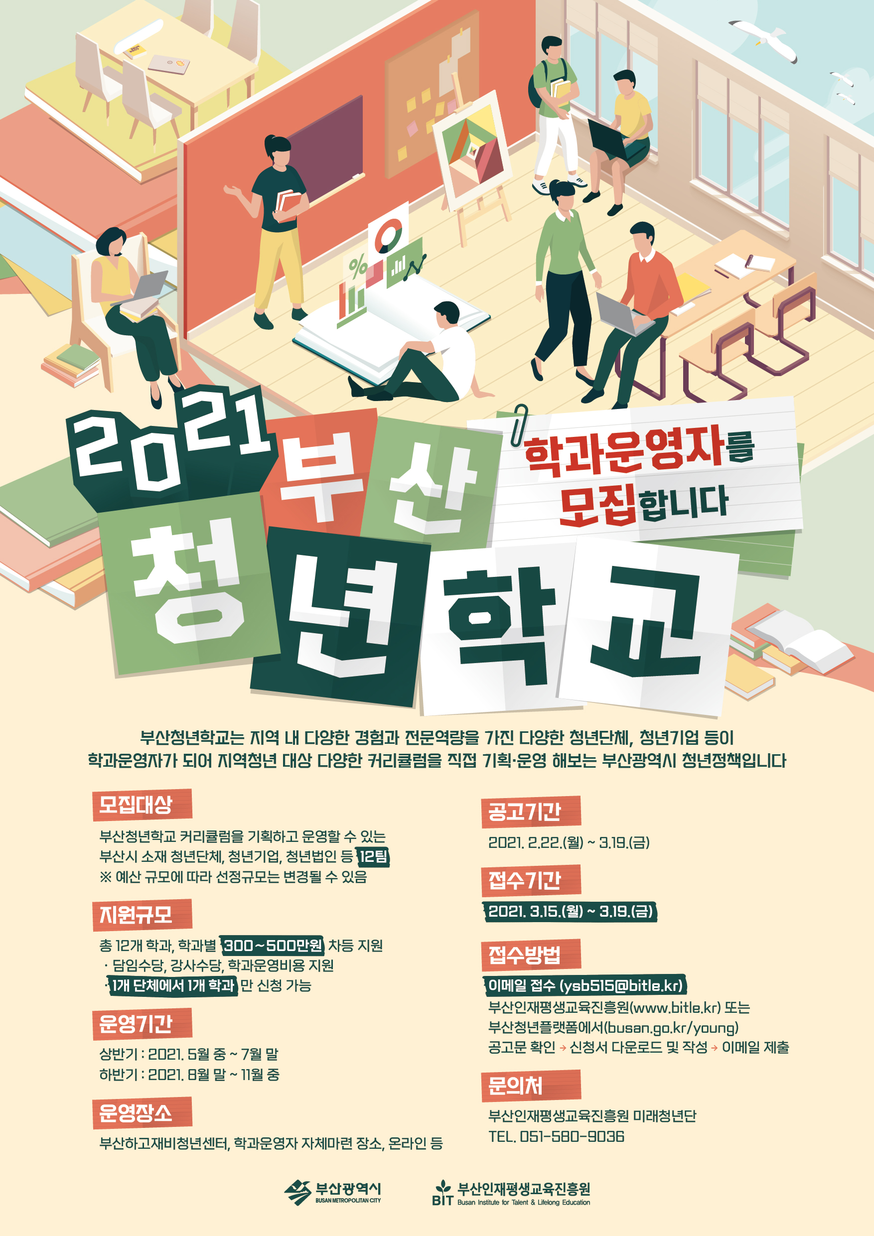 2021년 부산청년학교 학과운영자를 모집하오니, 많은 관심을 부탁드립니다.